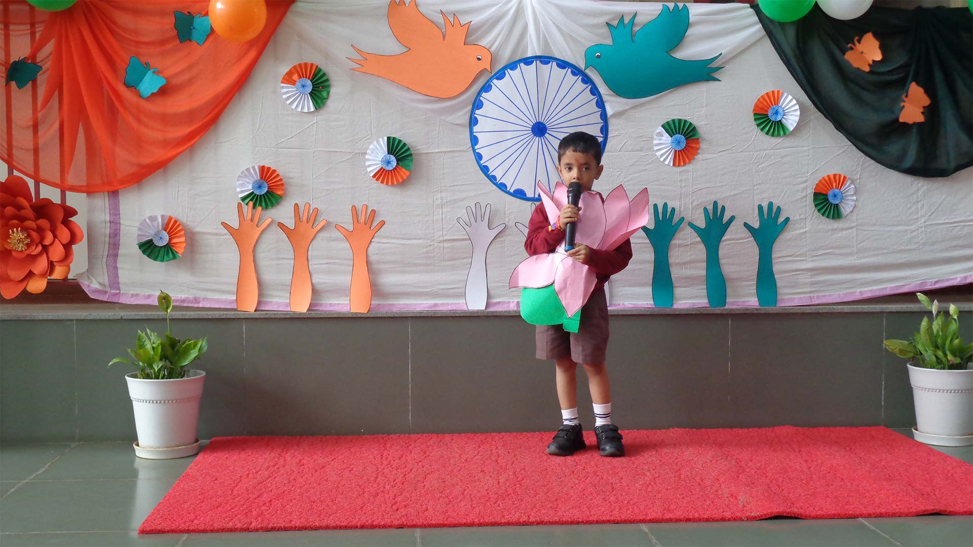 To commemorate this occasion, GMC Ecity held a unique event that spans an entire day. The KG 1 children dressed up as our national symbols and spoke about its importance The KG 2 children recreated the history by dressing up like the freedom fighters and chanted slogans.